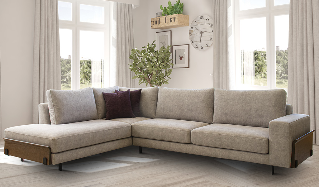 Devis γωνιακός καναπές συνδυάζει άνεση με στυλ. Ο μοντέρνος σχεδιασμός του ταιριάζει σε οποιαδήποτε υπάρχουσα διακόσμηση, με ιδιαίτερο χαρακτηριστικό τα μεγάλα αναπαυτικά μαξιλάρια. Το ισομετρικό ύψος και τα κομψά κουρμπαριστά πλαϊνά από μασίφ ξύλο, αποτελούν ένα καναπέ με στυλ. Μπορεί να φτιαχτεί στις διαστάσεις που επιθυμείτε. Με μεγάλη ποικιλία υφασμάτων σε χρώματα, αδιάβροχα, αλέκιαστα και easy clean.